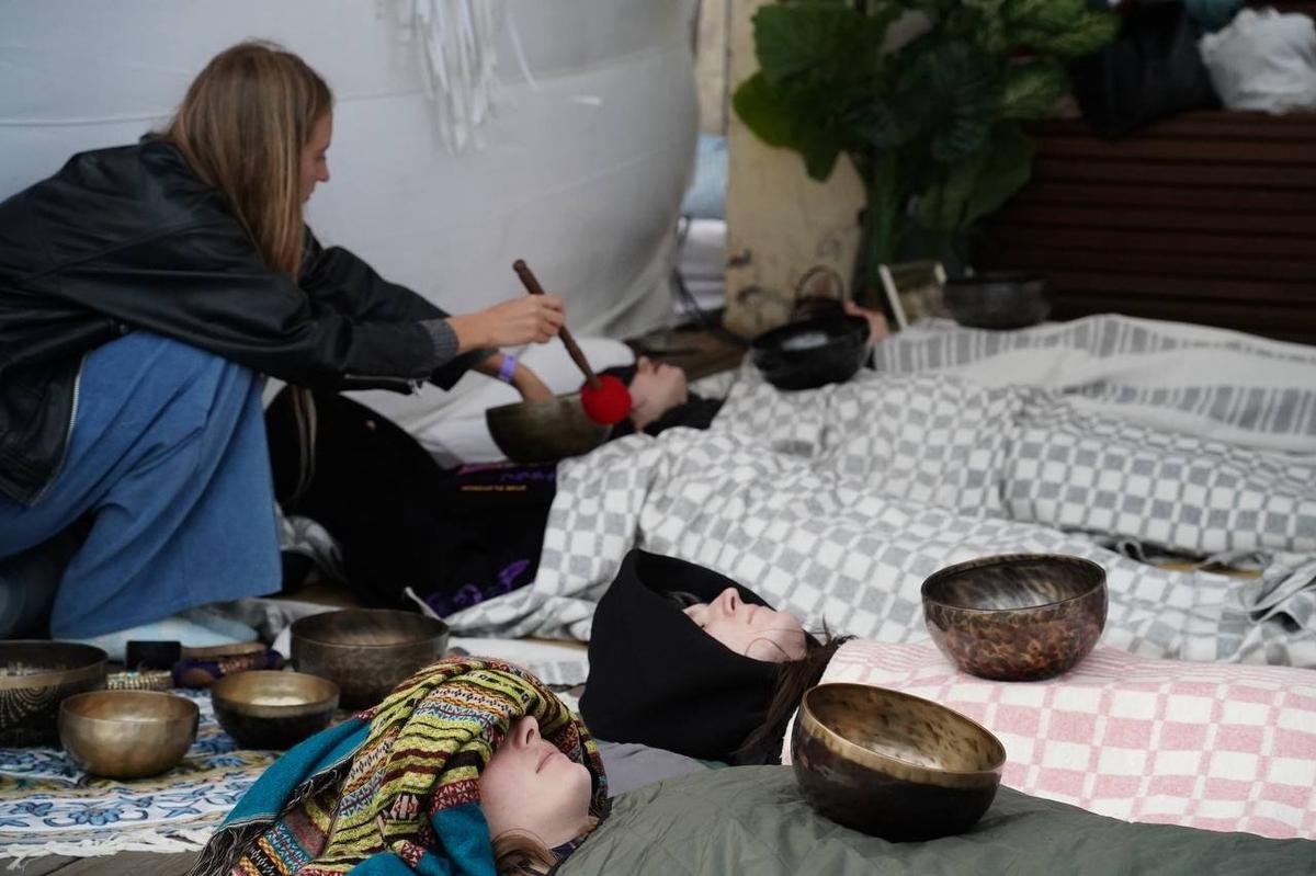 И пока артисты выступали на сценах, рядом продолжали работать площадки с благотворительным маркетом, тату-студия, занятие по йоге. Тут же можно было сыграть в бадминтон, поучаствовать в мастер-классах творческой студии или послушать лекции «Страдариум» от проекта «Страдающее Средневековье».
