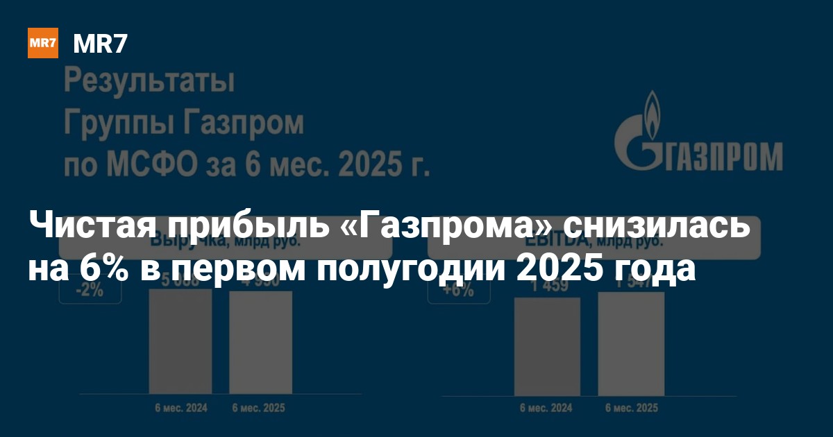 «Газпром» отчитался о снижении чистой прибыли за первое полугодие 2025 года на 6% — до 983 миллиардов рублей. Об этом сообщила компания 29 августа.