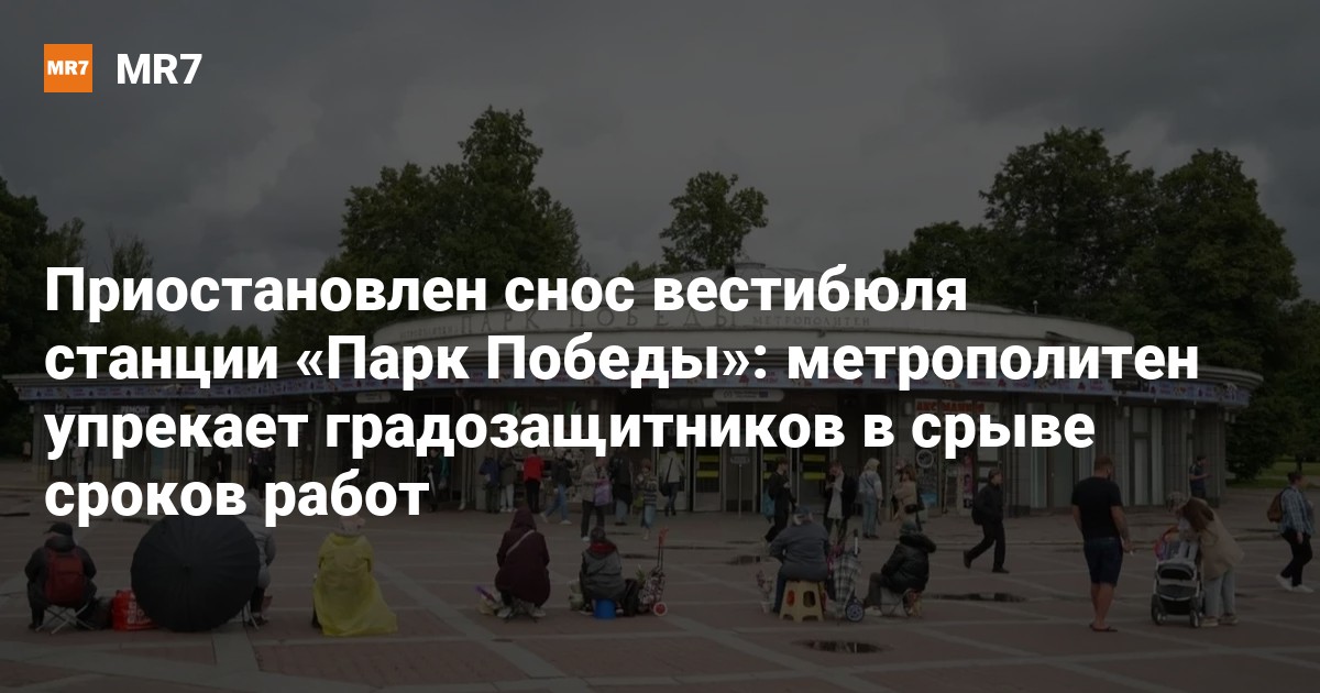 В Петербурге приостановлен демонтаж вестибюля станции метро «Парк Победы». Подрядчик вынужден был прервать снос, поскольку защитники здания подали очередную заявку на выявление признаков объекта культурного наследия. Согласно закону, на период рассмотрения заявки нельзя вести никаких строительных работ.