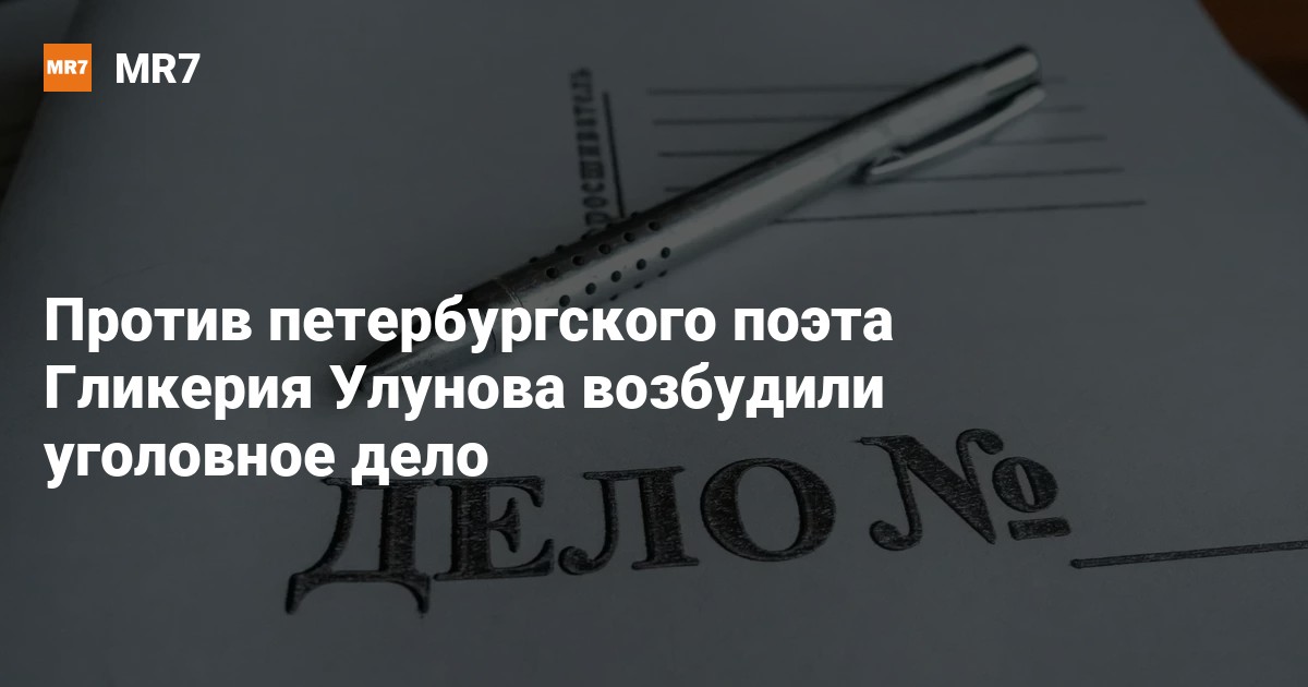 Правоохранительные органы возбудили уголовное дело против петербургского поэта Гликерия Улунова. Об этом 29 августа сообщило РИА Новости.