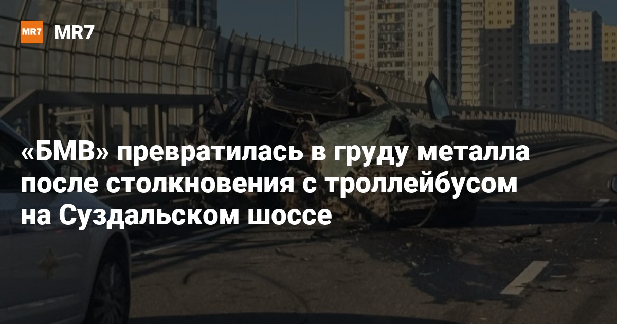 Троллейбус и «БМВ» столкнулись на Суздальском шоссе у Шуваловского путепровода утром 2 сентября, сообщают очевидцы в соцсетях.