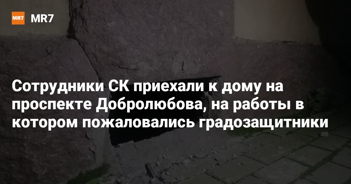 Во двор дома № 19 по проспекту Добролюбова 4 сентября явились сотрудники Следственного комитета и МЧС, о чем MR7 сообщил осведомленный источник. Ранее местные жители и градозащитники пожаловались на строительные работы, которые ведутся в подвальном помещении. Ситуация получила огласку в СМИ.