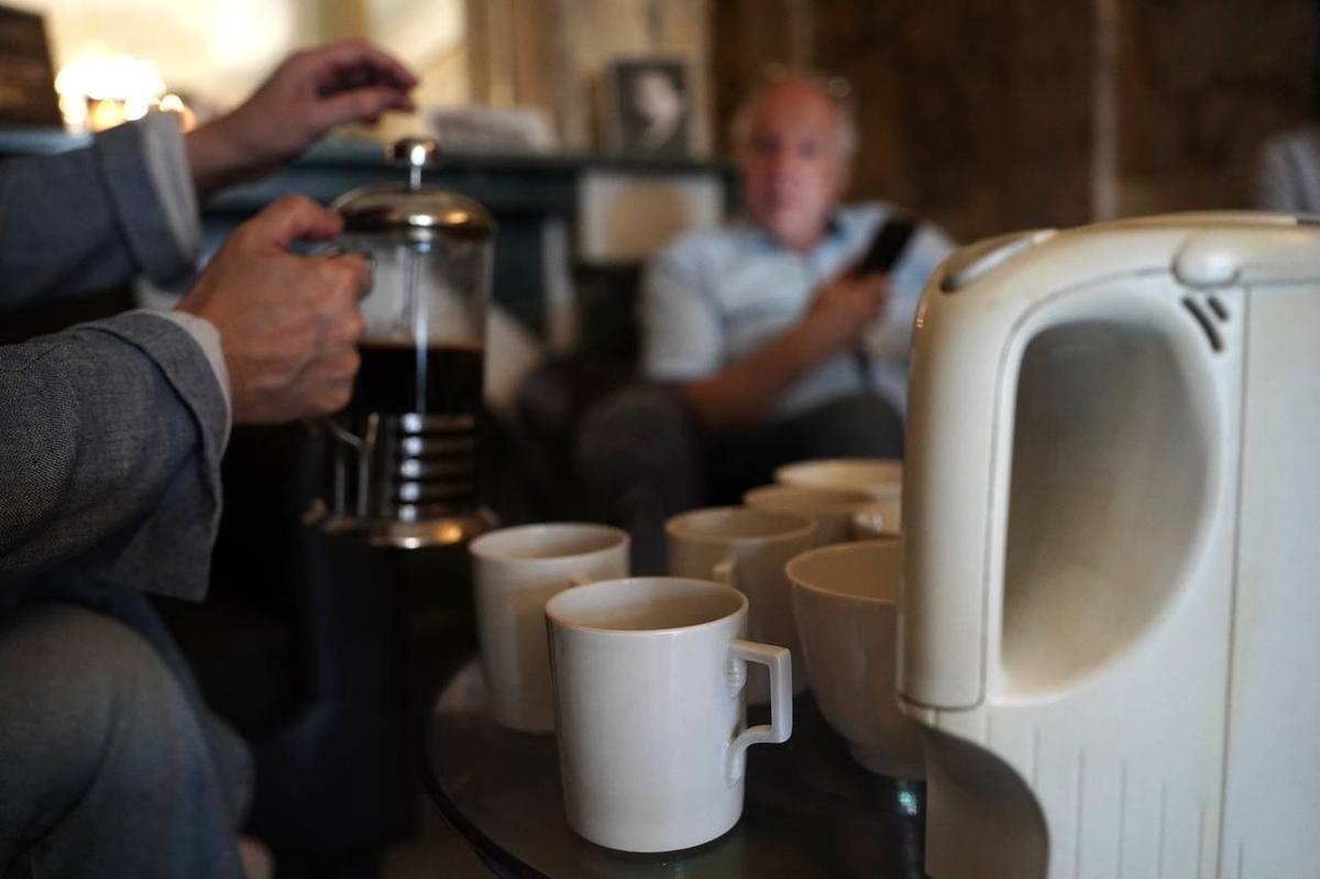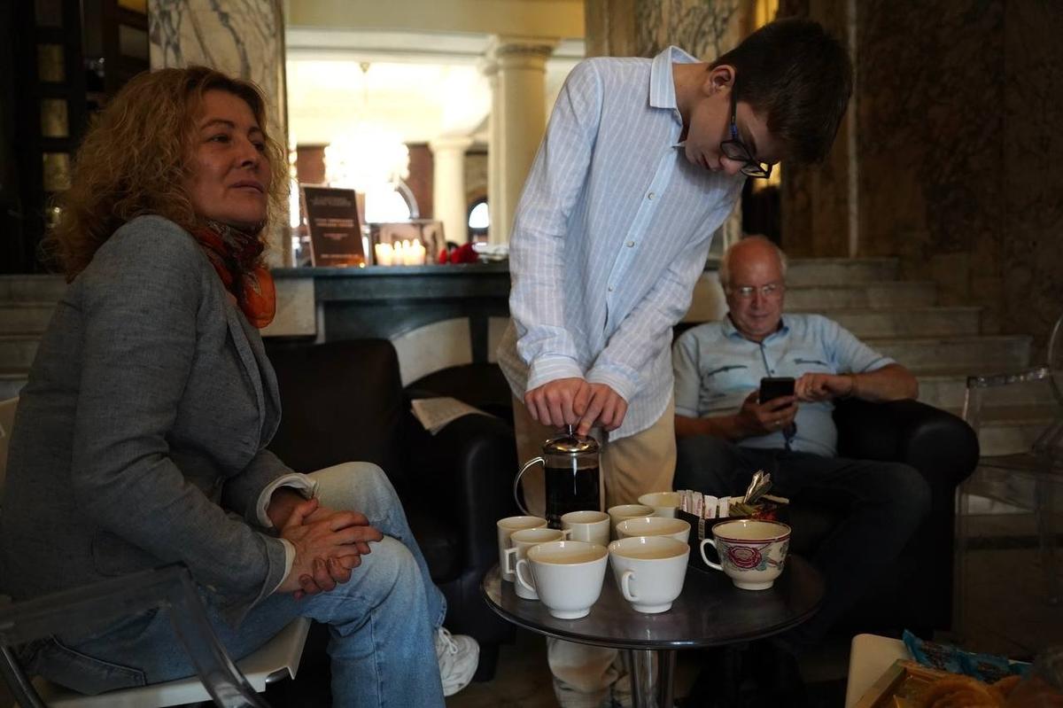 После акции памяти в фойе парадной собравшиеся остаются на небольшое чаепитие, вспоминают, обсуждают, что было в их квартирах в блокаду — где погибали, а кому повезло уехать.