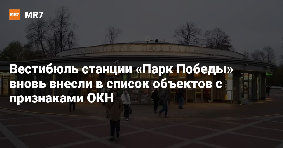 Оказавшийся под угрозой сноса вестибюль станции «Парк Победы» 10 сентября вновь внесли в список объектов с признаками ОКН, следует из данных на сайте КГИОП. Спасти от демонтажа здание уже как минимум в пятый раз пытаются петербургские градозащитники.