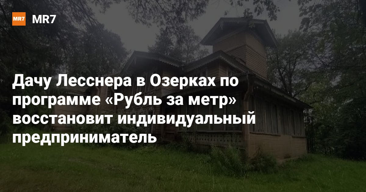 Дачу Лесснера на берегу Среднего Суздальского озера в Петербурге восстановит индивидуальный предприниматель Михаил Двороковский. Он выиграл аукцион — памятник зодчества продавали по программе «Рубль за метр».