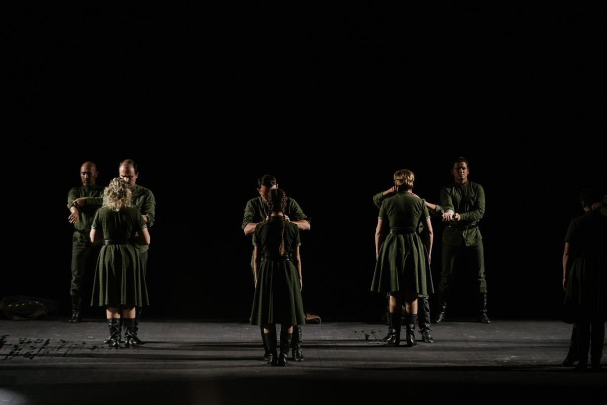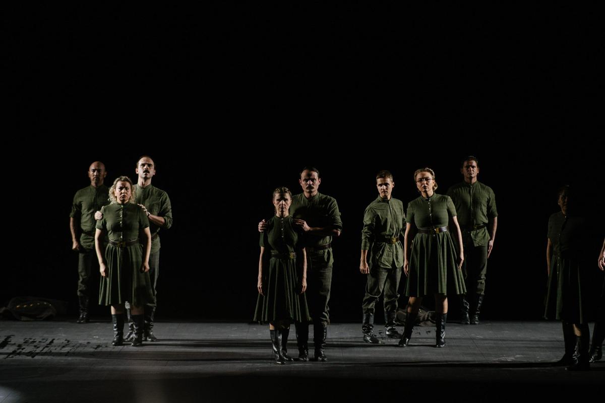 Жестами рассказана Великая Отечественная война. С самого её начала — сообщения Левитана, переведённого на жестовый язык, — до Победы и даже дальше — до 1970-х годов. После спектакля зрители долго беззвучно хлопают, подняв ладони как можно выше.