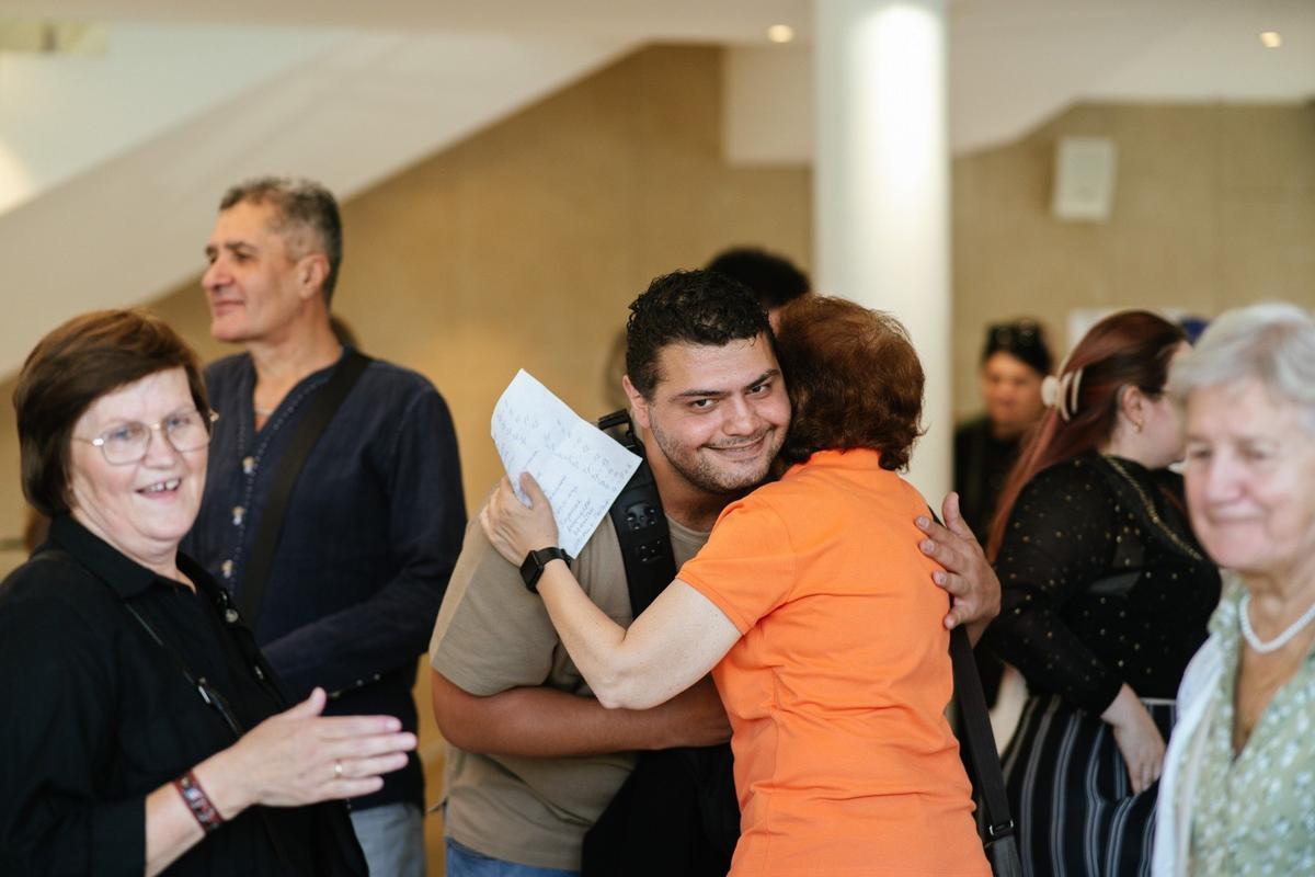 — Я тотально глухой. Год назад установил слуховой аппарат — только-только осваиваю, — делится Валерий. — Но что-то периодически слышу. Так было и сегодня во время репетиции. И это было счастье — совпасть с текстом, темпом, счётом.