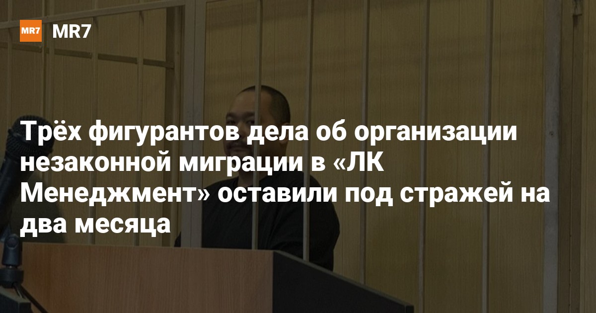 Куйбышевский районный суд Петербурга оставил гендиректора «ЛК Менеджмент» Дмитрия Кима и управляющего Елену Сороку под стражей до 9 ноября 2025 года. Об этом 11 сентября сообщили в объединённой пресс-службе судов Петербурга. Их и других фигурантов обвиняют в организации незаконной миграции (часть 3 статьи 322.1 УК РФ).