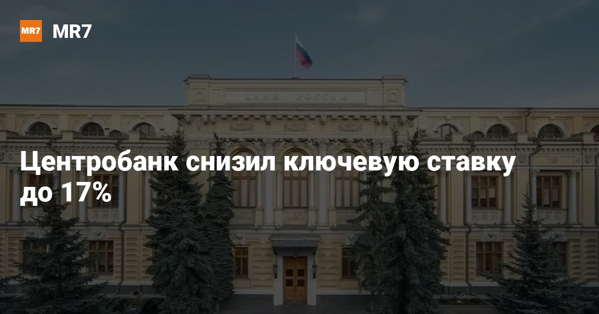 Центробанк снизил ключевую ставку с 18% до 17% годовых. Информация об этом днем 12 сентября появилась на сайте регулятора.