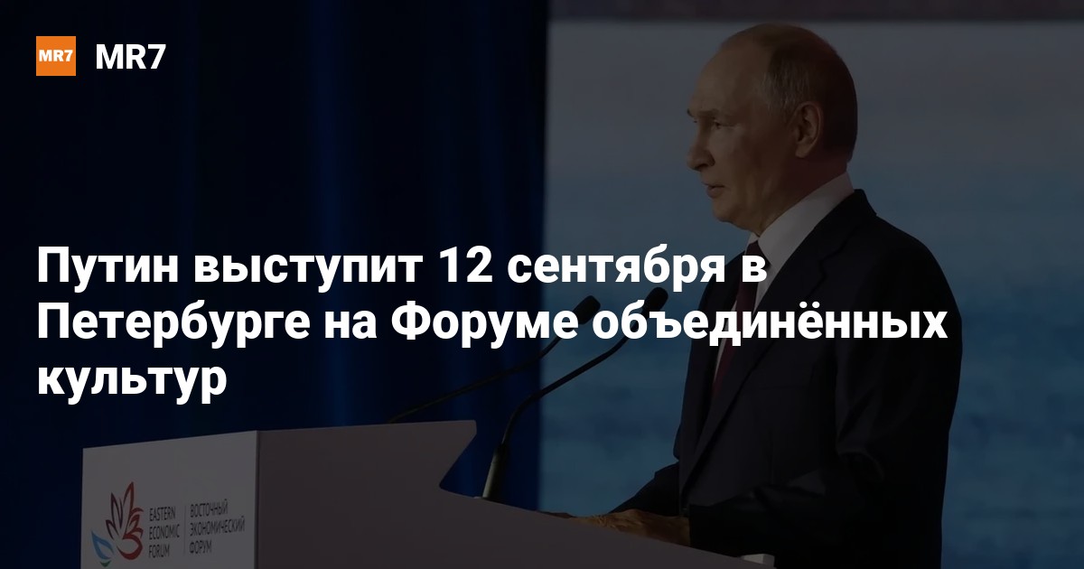 UPD (18:57) Ожидается, что Владимир Путин вечером 12 сентября обратится к участникам Форума объединённых культур, сообщил пресс-секретарь президента Дмитрий Песков. По его словам, глава РФ также отдельно встретится в Петербурге с министром культуры Ольгой Любимовой.