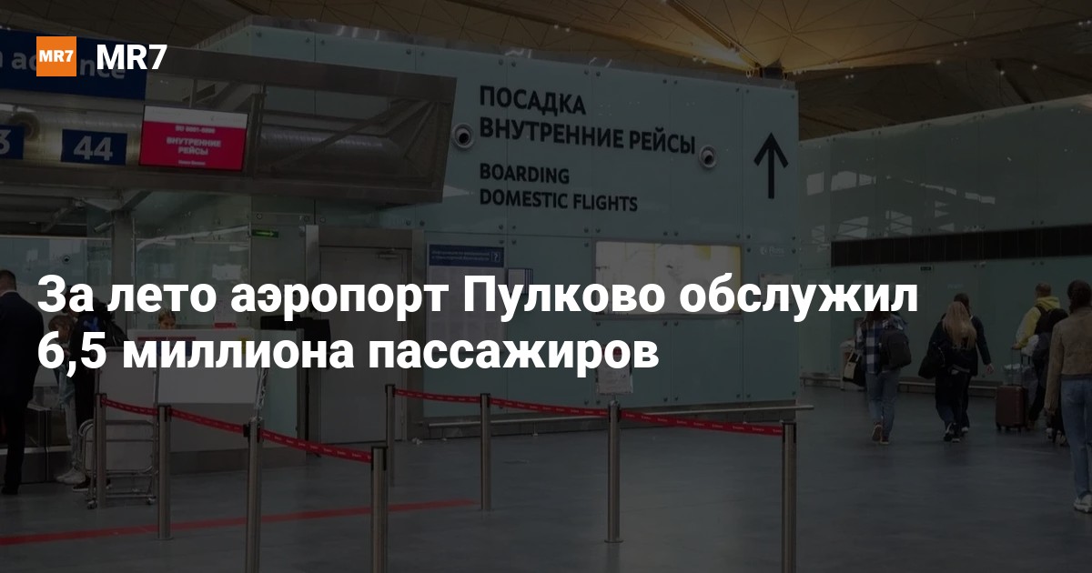 Вице-губернатор Петербурга Кирилл Поляков, курирующий транспортную сферу, 15 сентября сообщил в своих социальных сетях, что аэропорт Пулково минувшим летом обслужил 6,5 миллиона пассажиров.