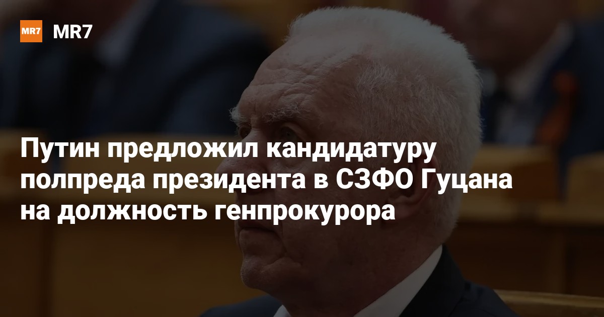 Президент России Владимир Путин предложил кандидатуру полномочного представителя главы РФ в СЗФО Александра Гуцана на должность генпрокурора, сообщил сенатор Андрей Клишас 18 сентября.