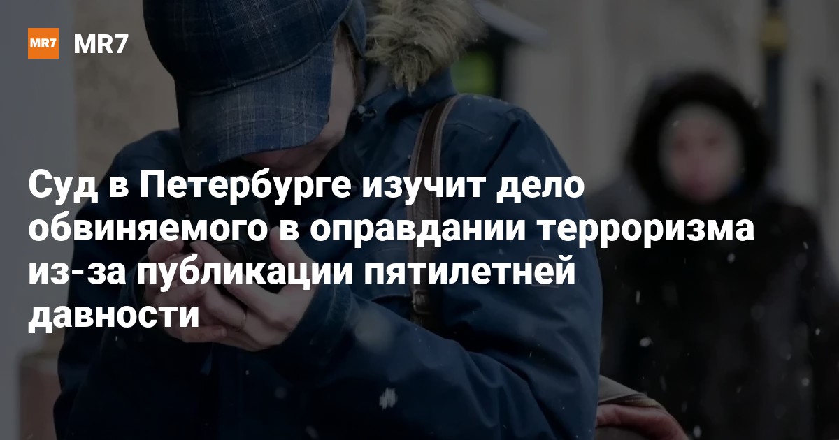 Кировский районный суд Петербурга изучит дело уроженца Ставропольского края, обвиняемого в публичном оправдании терроризма, сообщили в пресс-службе ГСУ СК РФ по городу 19 сентября. Разобраться предстоит в публикации пятилетней давности.