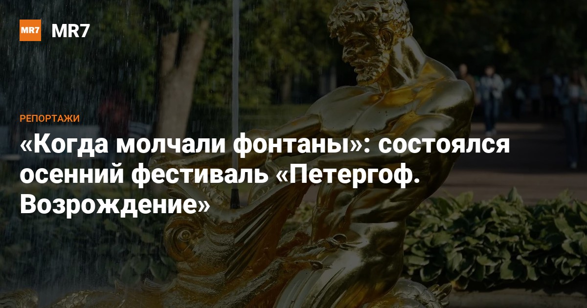 В Нижнем парке Музея-заповедника «Петергоф» завершается осенний фестиваль фонтанов «Петергоф. Возрождение». На этот раз он был посвящён воссозданию дворцов-паркового ансамбля после Великой Отечественной войны.