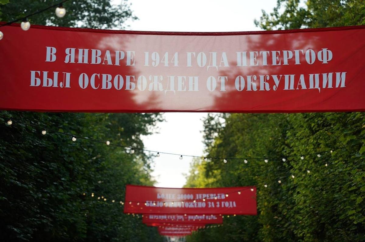 Петергоф был оккупирован 23 сентября 1941 года. В тот день загорелся Большой петергофский дворец: в него попал снаряд. Оккупация длилась до 19 января 1944 года. 27 января 1944 года, в День снятия блокады Ленинграда, Петергоф был переименован в Петродворец и носил это название до 1997 года.