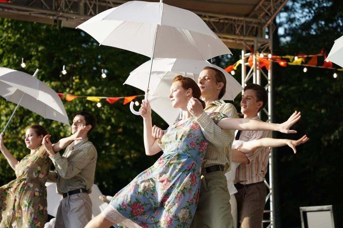 На танцплощадке актёры исполняли вальсы и танго под послевоенную музыку. По аллеям Нижнего парка можно было слышать музыкантов духового оркестра под руководством Евегения Лебедева.