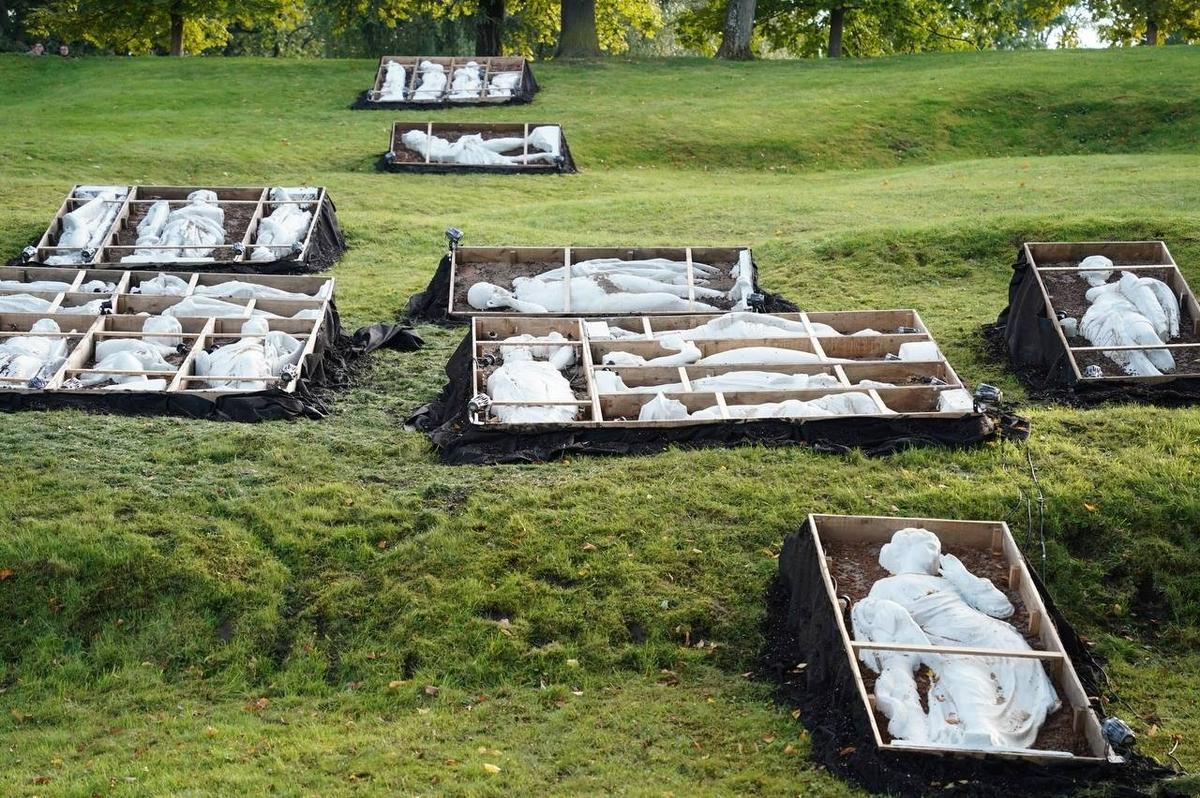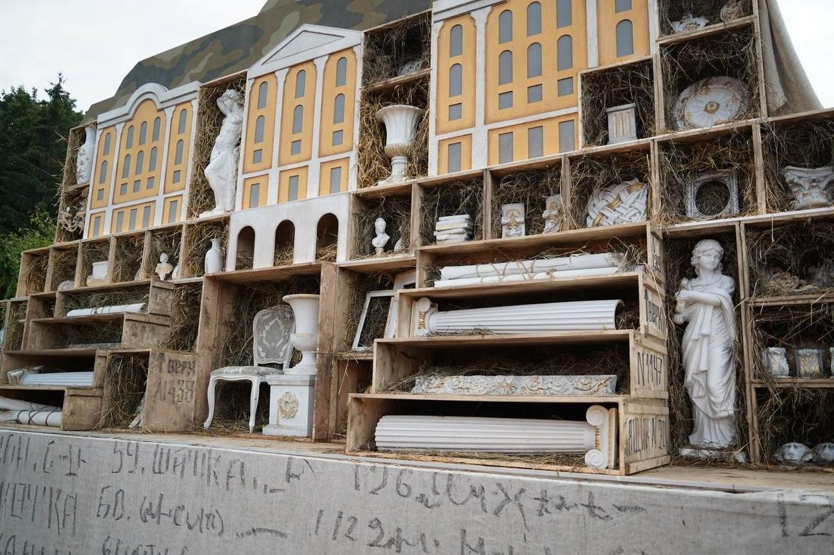 Яркой иллюстрацией сложных поисков двух скульптур — «Адама» и «Евы» — стал арт-объект «Скрытые в земле», рядом с которым звучал аудиоспектакль, собранный из мемуаров сотрудников музея-заповедника военного времени. Тайники этих экспонатов искали особенно долго, «как затерянный клад», по словам Марины Тихомировой. Их поиски вёл назначенный в 1944 году директором Яков Шурыгин, который и соединял разрозненные части — отколовшиеся мраморные пальцы, детали одежды.