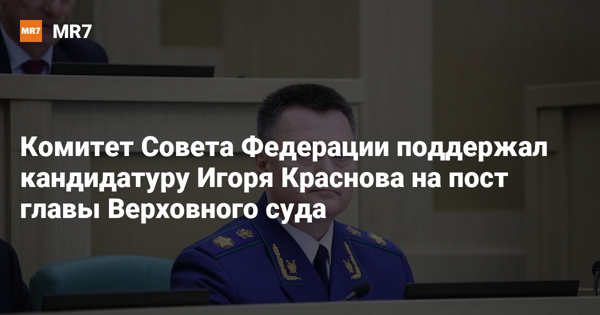 Кандидатуру генерального прокурора Игоря Краснова на должность главы Верховного суда (ВС РФ) одобрили на заседании комитета Совета Федерации по конституционному законодательству и госстроительству. Об этом сообщили 23 сентября в соцсетях верхней палаты парламента России.
