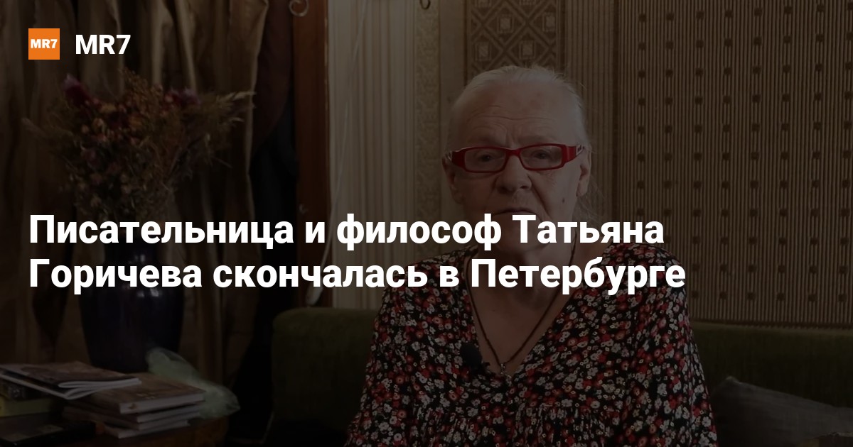 Философ, писательница и зоозащитница Татьяна Горичева скончалась в Петербурге на 79-м году жизни. Об этом в своих социальных сетях 23 сентября сообщил литературовед-японист Александр Чанцев.