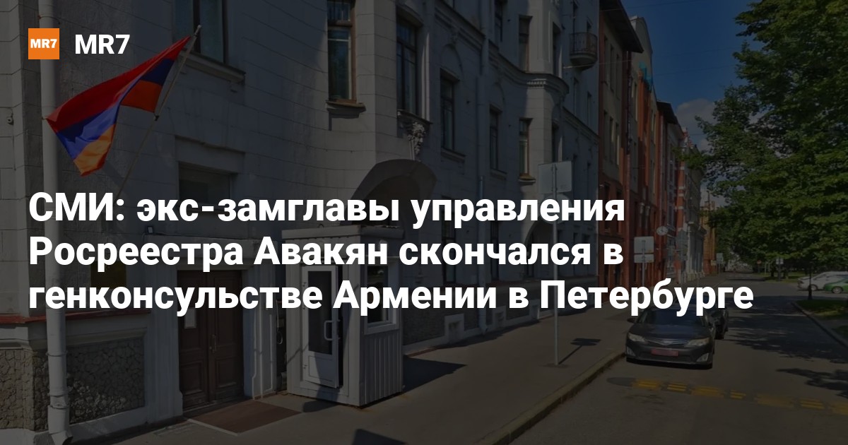 Бывший чиновник Росимущества Борис Авакян, укрывшийся накануне от правоохранителей в генконсульстве Армении на Васильевском острове, скончался, пишет «Фонтанка» 24 сентября.