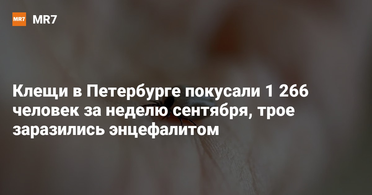 В Петербурге с жалобами на укусы клещей за неделю с 18 по 24 сентября обратились 1 266 человек, рассказали в пресс-службе Роспотребнадзора по городу и Ленобласти. Среди пострадавших от паразитов 134 ребёнка.