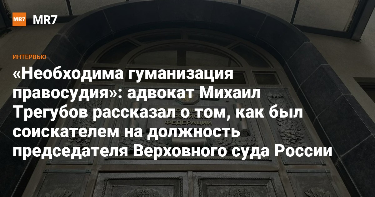 Совет Федерации 24 сентября утвердил Игоря Краснова в должности председателя Верховного суда России. В конце августа сообщалось, что он являлся единственным претендентом на эту позицию. Это следовало из заявления Высшей квалификационной коллегии судей. Однако, как стало известно, ещё как минимум один соискатель пробовал подать документы. Адвокат и преподаватель Михаил Трегубов из Петербурга подавал документы в тот же день, что и Игорь Краснов — 25 августа. Именно тогда завершился приём заявлений. MR7 спросил его о том, как проходил процесс подачи документов, с чем связано решение попробовать свои шансы и что он хотел бы пожелать новому главе Верховного суда.