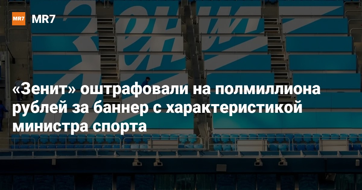 Контрольно-дисциплинарный комитет РФС назначил штраф в размере 500 тысяч рублей футбольному клубу «Зенит». Наказание назначили из-за баннера с грубой характеристикой министра Михаила Дегтярева, который был вывешен болельщиками команды на стадионе «Газпром Арена». Об этом 25 сентября пишет интернет-издание «Чемпионат».