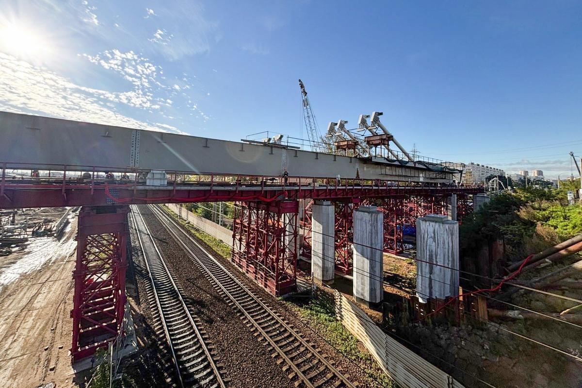 Надвижка конструкций пролётного строения нового Цимбалинского путепровода началась в Петербурге, рассказали в пресс-службе Смольного 26 сентября.