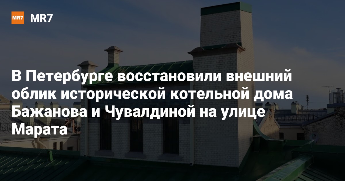 В Петербурге завершён очередной этап реставрации дома Бажанова и Чувалдиной на улице Марата, 72. Восстановлен внешний облик котельной начала XX века, которая является частью уникальной отопительной системы здания. Работы выполняются по программе КГИОП за счёт бюджета города, заказчиком выступает СПб ГКУ «Дирекция заказчика по ремонтно-реставрационным работам на памятниках истории и культуры».