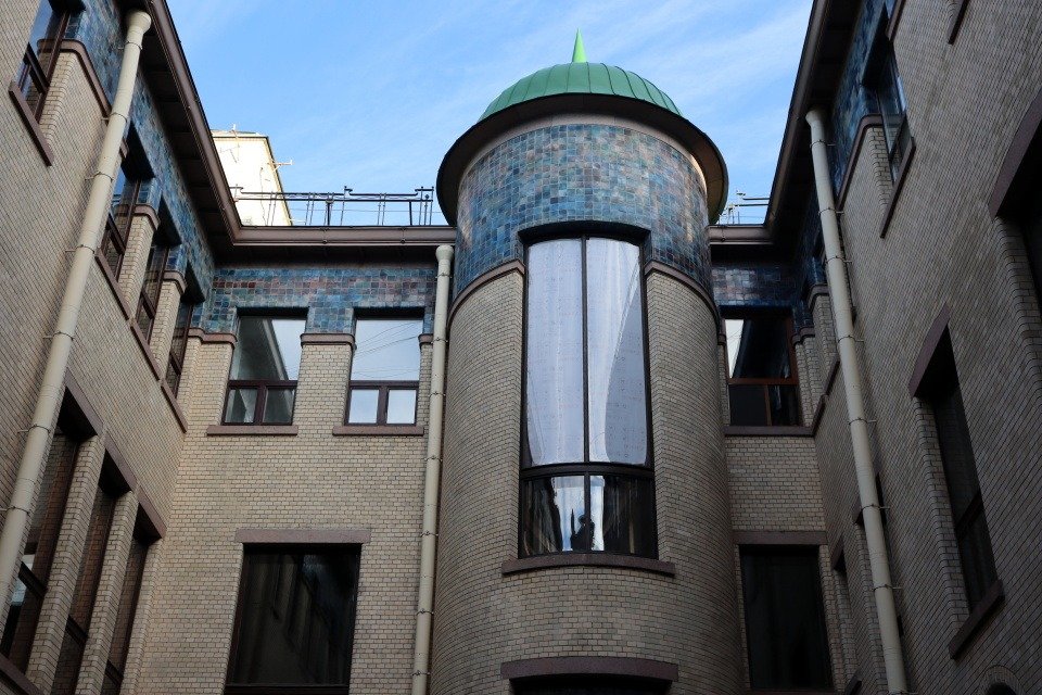 В ходе реставрации были обновлены гранитные элементы, металлические окна, венчающий карниз, водосточные трубы, фриз из майоликовой плитки и стены, облицованные керамической плиткой «кабанчик».