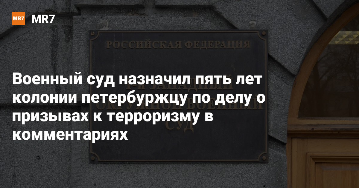 1-й Западный военный окружной суд назначил пять лет лишения свободы общего режима 39-летнему Андрею Курылеву по делу о призывах к терроризму в комментариях, сообщает «ОВД-Инфо»* 26 сентября.