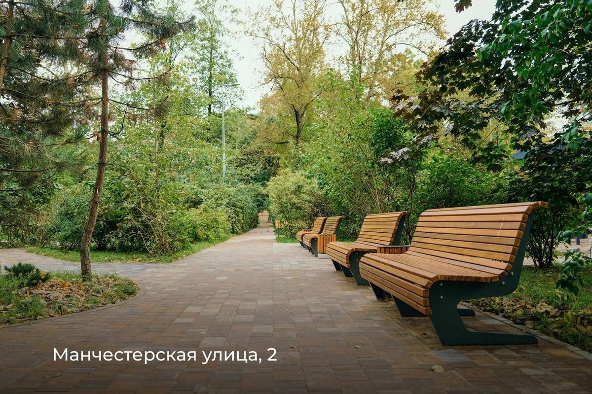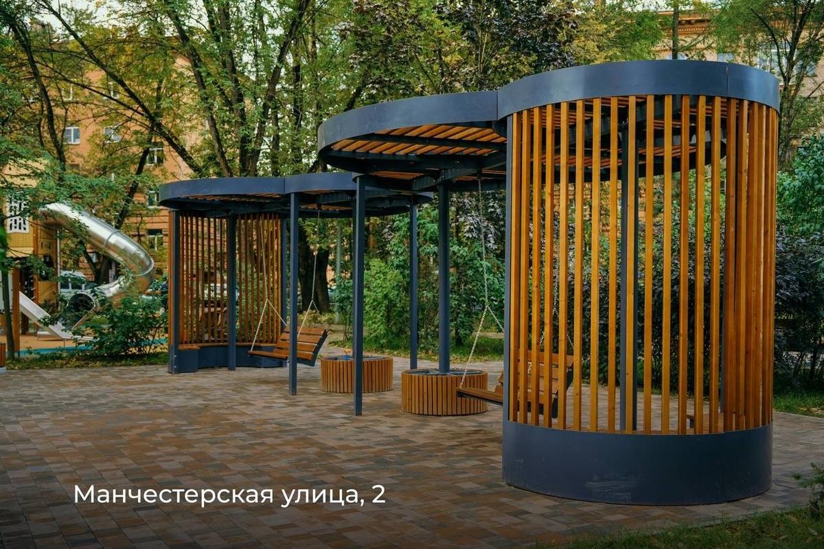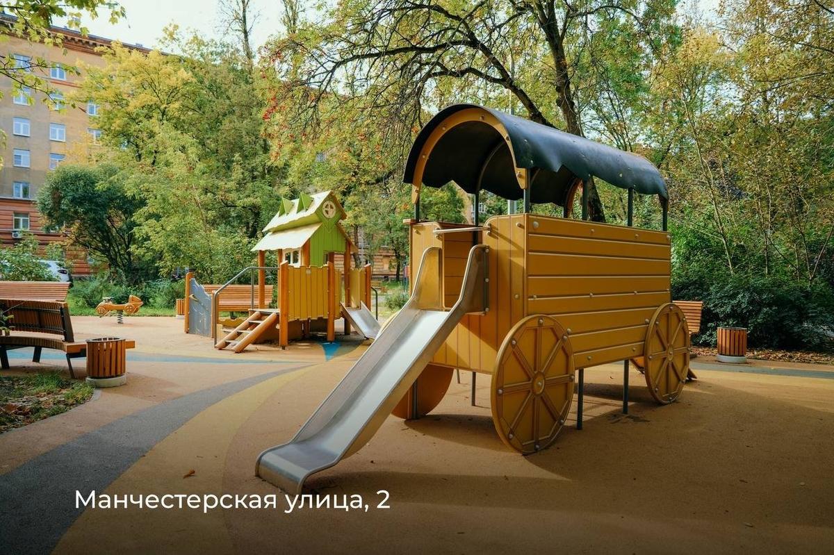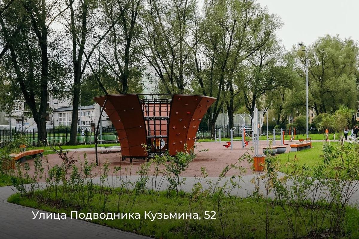 В Выборгском районе провели комплексное благоустройство внутриквартальной территории между Манчестерской улицей и проспектом Энгельса. Обновили асфальтовое покрытие, создали зоны отдыха и спортивные площадки. Для детей установили игровые комплексы и качели, для взрослых — уличные тренажёры.