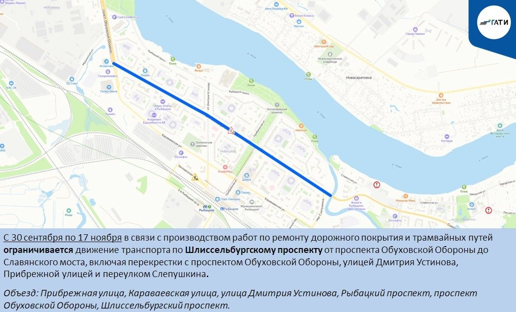 - С 30 сентября по 17 ноября ограничат движение по Шлиссельбургскому проспекту от проспекта Обуховской Обороны до Славянского моста.
