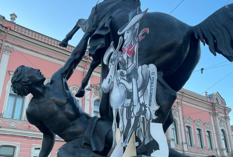 Героем работы стал персонаж популярных европейских комиксов «Счастливчик Люк», символизирующий находчивость, позитив и стремление к миру. Художник отметил, что выбор места неслучаен: на фоне строгих коней Клодта фигура Люка должна напоминать прохожим о важности сохранять спокойствие и внутреннее равновесие.