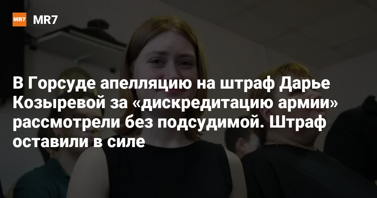 Днём 1 октября в Горсуде должны были вновь рассмотреть жалобу 19-летней Дарьи Козыревой на штраф, который она получила за высказывания в своём последнем слове в суде по уголовному делу. В июне, спустя два месяца после вынесения ей приговора, Петроградский суд оштрафовал девушку на 40 500 рублей (из 50 возможных по этой статье) по административной статье «о дискредитации армии» (20.3.3 КоАП РФ).
