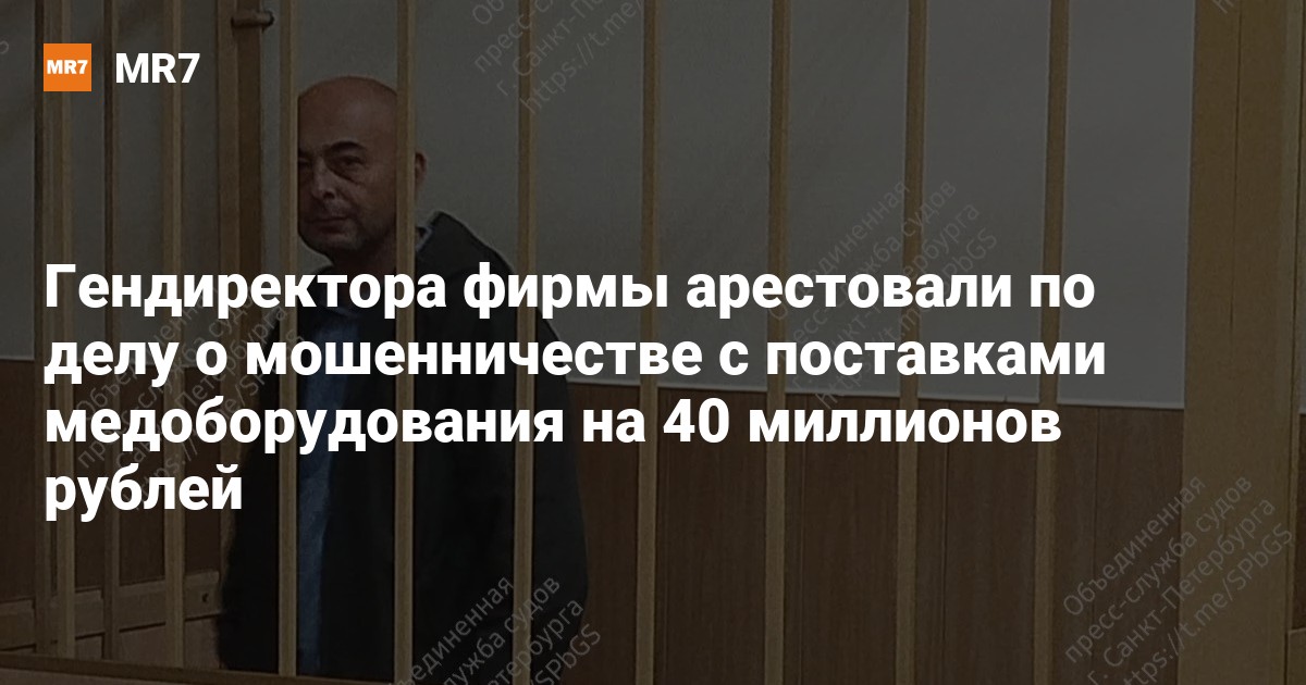 Петродворцовый районный суд Петербурга отправил в СИЗО гендиректора ООО «Ориент» Леонида Насыбуллина по делу о хищении медицинского оборудования на сумму в 40 миллионов рублей. Об этом 2 октября сообщили в пресс-службе судов города.
