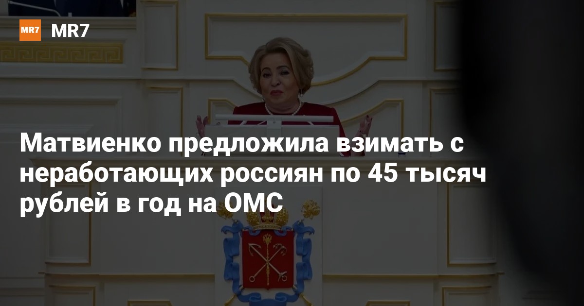 «Я считаю, любой здоровый человек 45 тысяч в год может заплатить, эти небольшие такие, не колоссальные средства», — произнесла глава Совфеда на заседании 6 октября.