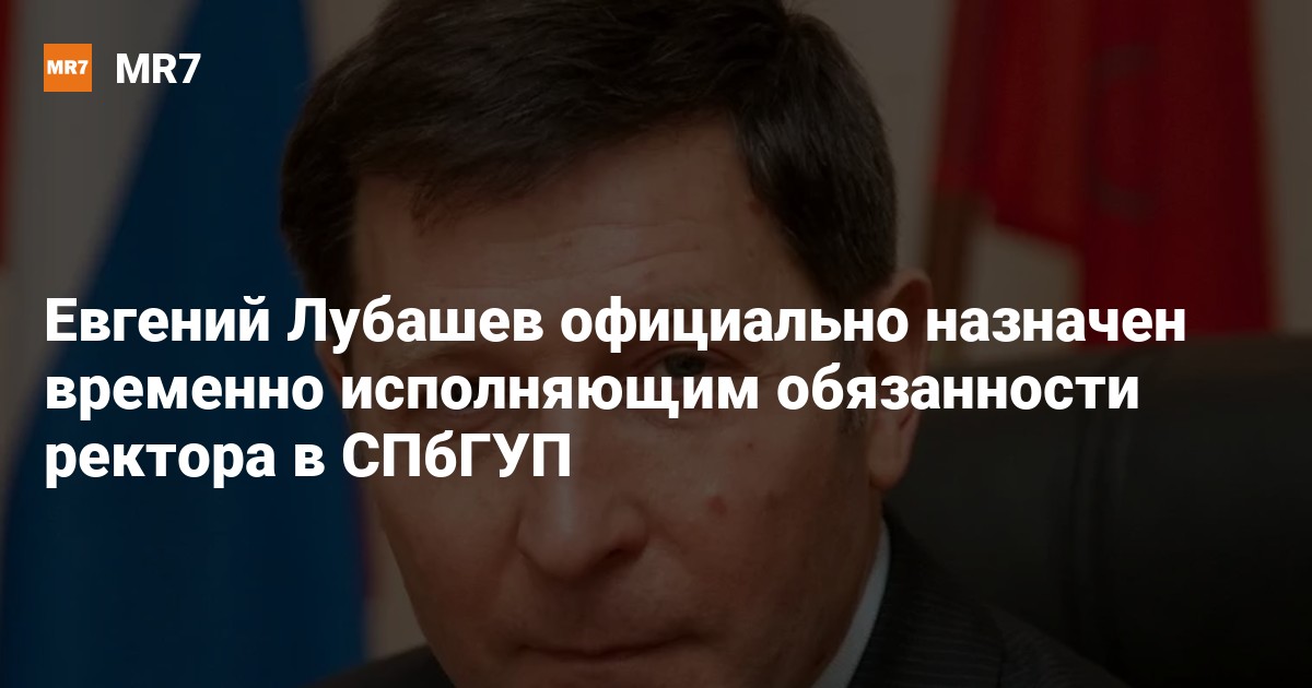 Согласно данным единого государственного реестра юридических лиц в Санкт-Петербургском гуманитарном университете профсоюзов, с 2 октября временно исполняющим обязанности ректора стал Евгений Лубашев, ранее возглавлявший городской техникум отраслевых технологий, финансов и права.