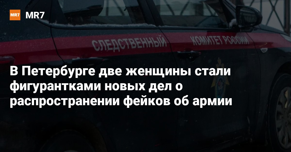 Две петербурженки стали фигурантками новых дел, возбужденных по части 2 статьи 207.3 УК (распространение фейков о российской армии), о чем 7 октября сообщило главное следственное управление СК по городу. Дела расследуются в Петроградском районе.