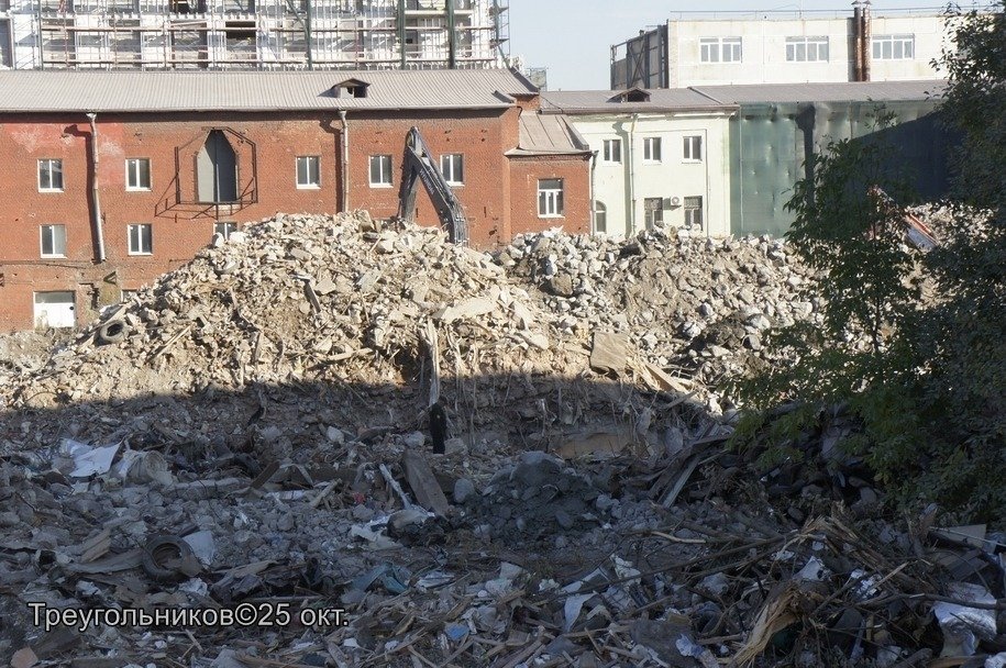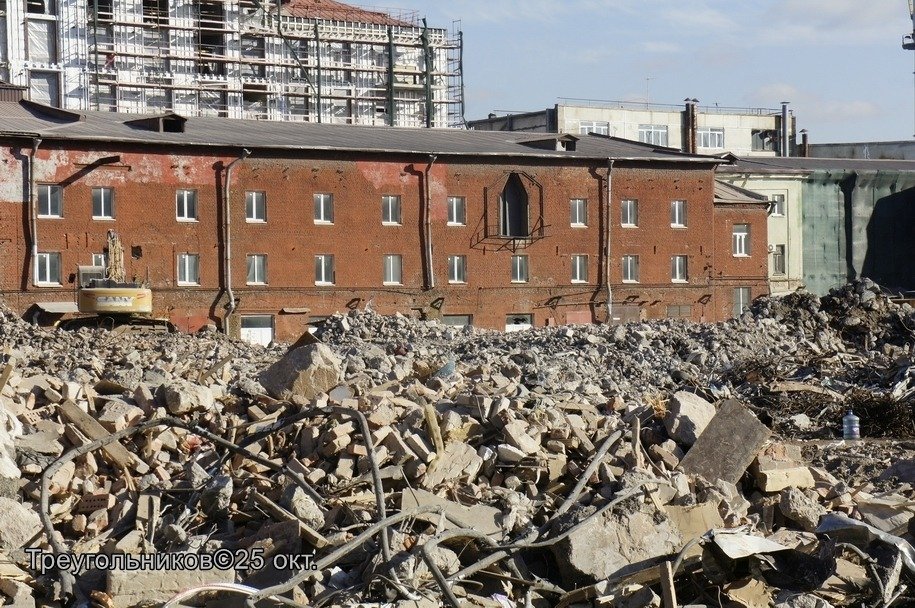 По его словам, работы по демонтажу начались летом, а к октябрю уже демонтировано около 90% зданий. На месте промзоны планируется жилая застройка площадью около 48 тысяч квадратных метров.