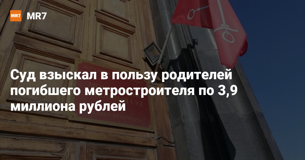 Московский районный суд частично удовлетворил иск Константина и Наталии Автуховых, чей сын погиб на рабочем месте, к его работодателю — АО «Метрострой Северной Столицы». Об этом 9 октября сообщила объединенная пресс-служба городских судов. Родители погибшего проходчика 4-го разряда добивались выплат по пять миллионов рублей каждому. Ответчик выступал против удовлетворения иска.