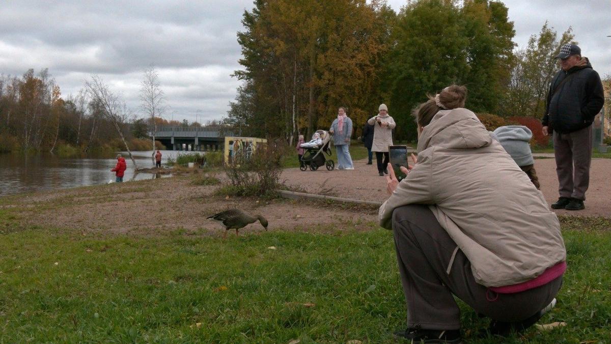 В Петербурге задержался, отбившись от стаи, белолобик — молодой белолобый дикий гусь, о чем 13 октября рассказал в своем блоге биолог Павел Глазков. Птицу заметили в Приморском районе. Есть надежда, что в обозримом будущем она продолжит путь в теплые края.