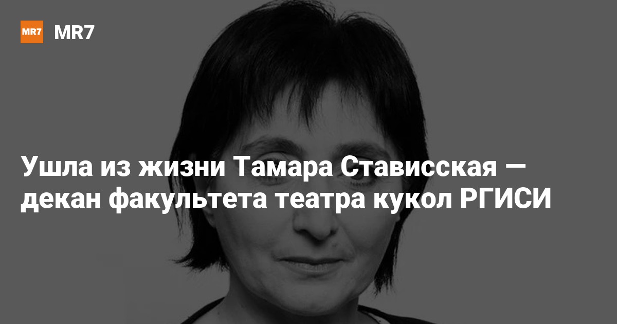 Тамара Стависская, выдающийся педагог и режиссёр, почти четыре десятилетия посвятившая Театральному институту на Моховой, скончалась на 75-м году жизни, сообщает 14 октября Российский государственный институт сценических искусств.