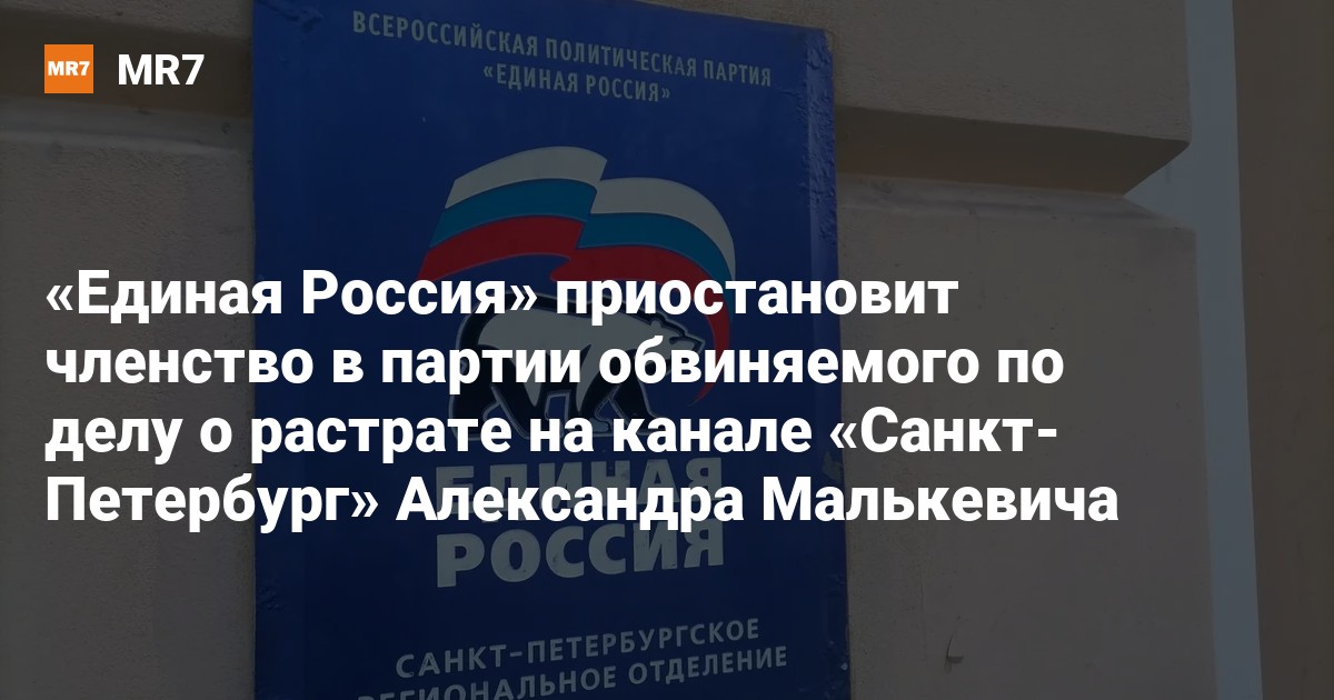 «Единая Россия» на этой неделе приостановит членство депутата ЗакСа Александра Малькевича в партии, сообщает издание «ЗАКС.Ру» со ссылкой на спикера городского парламента и руководителя городского отделения партии Александра Бельского. Об этом стало известно после заседания в Мариинском дворце 15 октября.