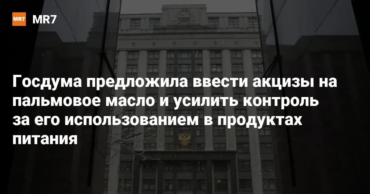 С инициативой выступил комитет по защите семьи, вопросам отцовства, материнства и детства. В документе предлагается ввести акцизы и повысить таможенные пошлины на пальмовое масло, а также создать единую систему мониторинга технологических процессов при его использовании в производстве.