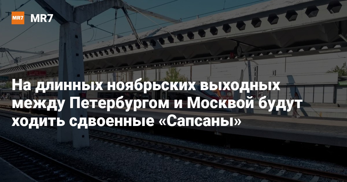 «Российские железные дороги» удвоили число мест в высокоскоростных поездах «Сапсан», которые будут курсировать между двумя российскими столицами в предстоящие ноябрьские праздничные и выходные дни. Об этом 16 октября сообщается в telegram-канале РЖД. Компания ожидает повышенного спроса на билеты. Сдвоенными сделали следующие поезда из Москвы в Петербург:
