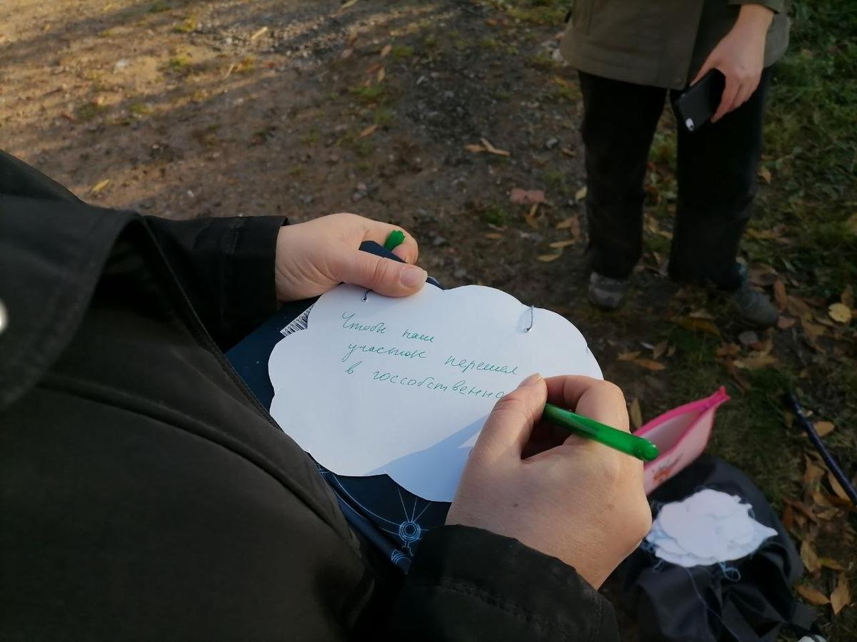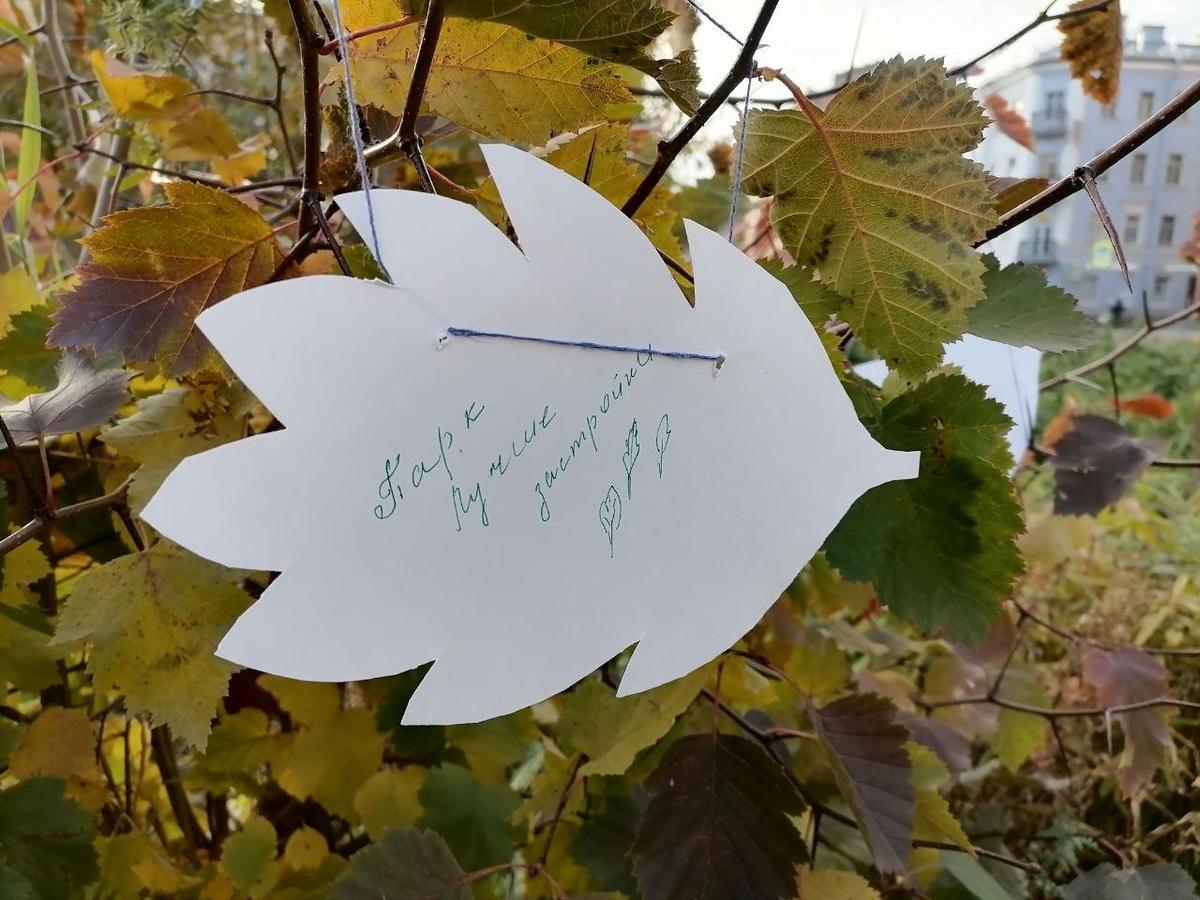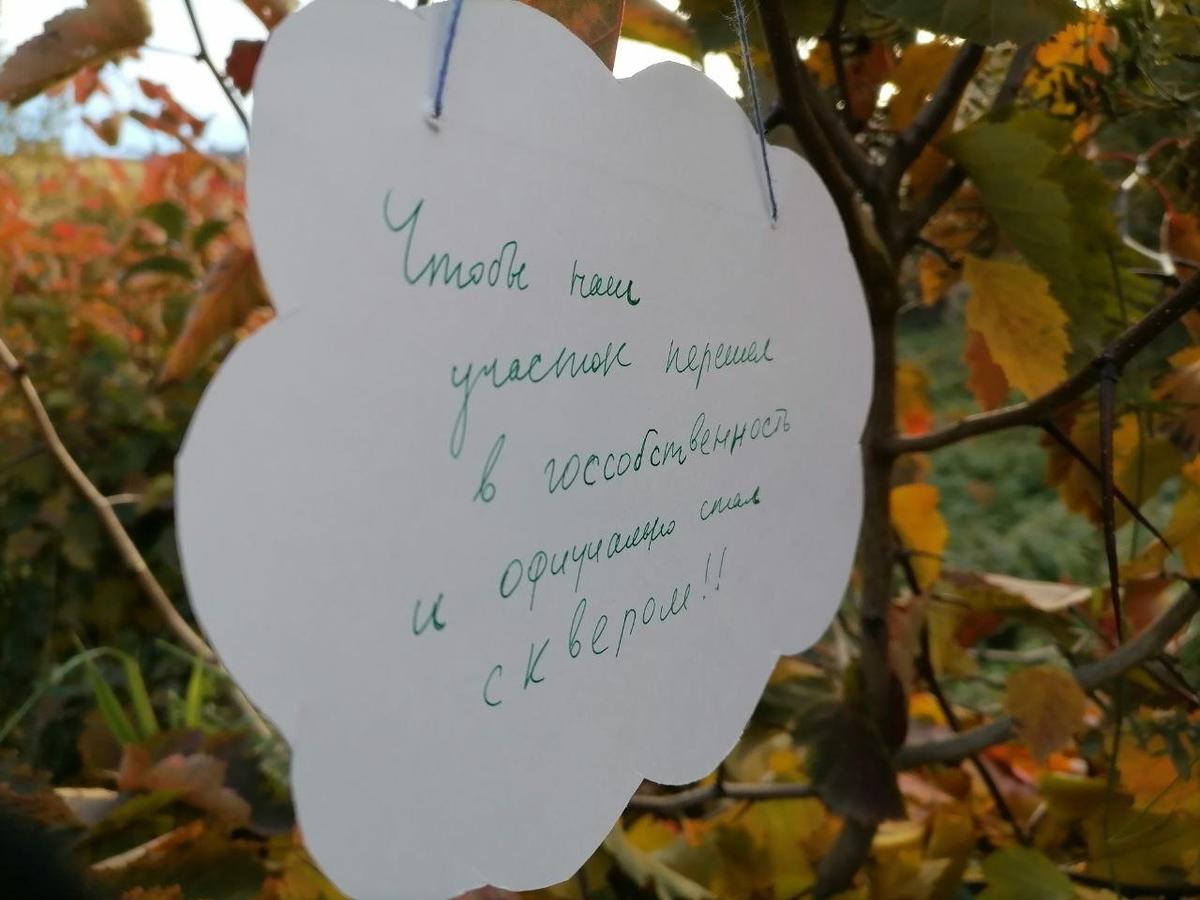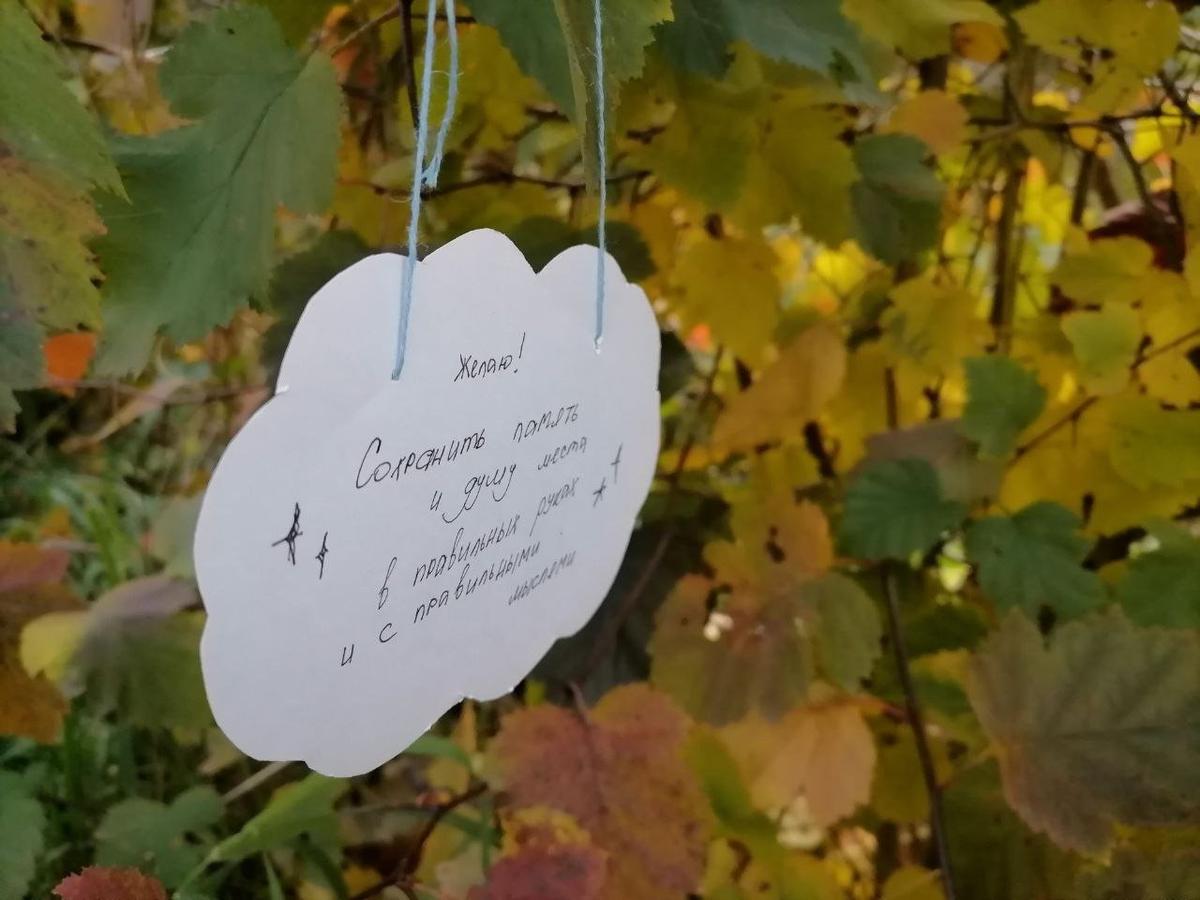 Во время субботника активисты собрали несколько мешков мусора — бутылки, упаковки и прочие отходы, оставленные посетителями, — восстановили небольшой стенд с историей участка и украсили куст открытками с пожеланиями.