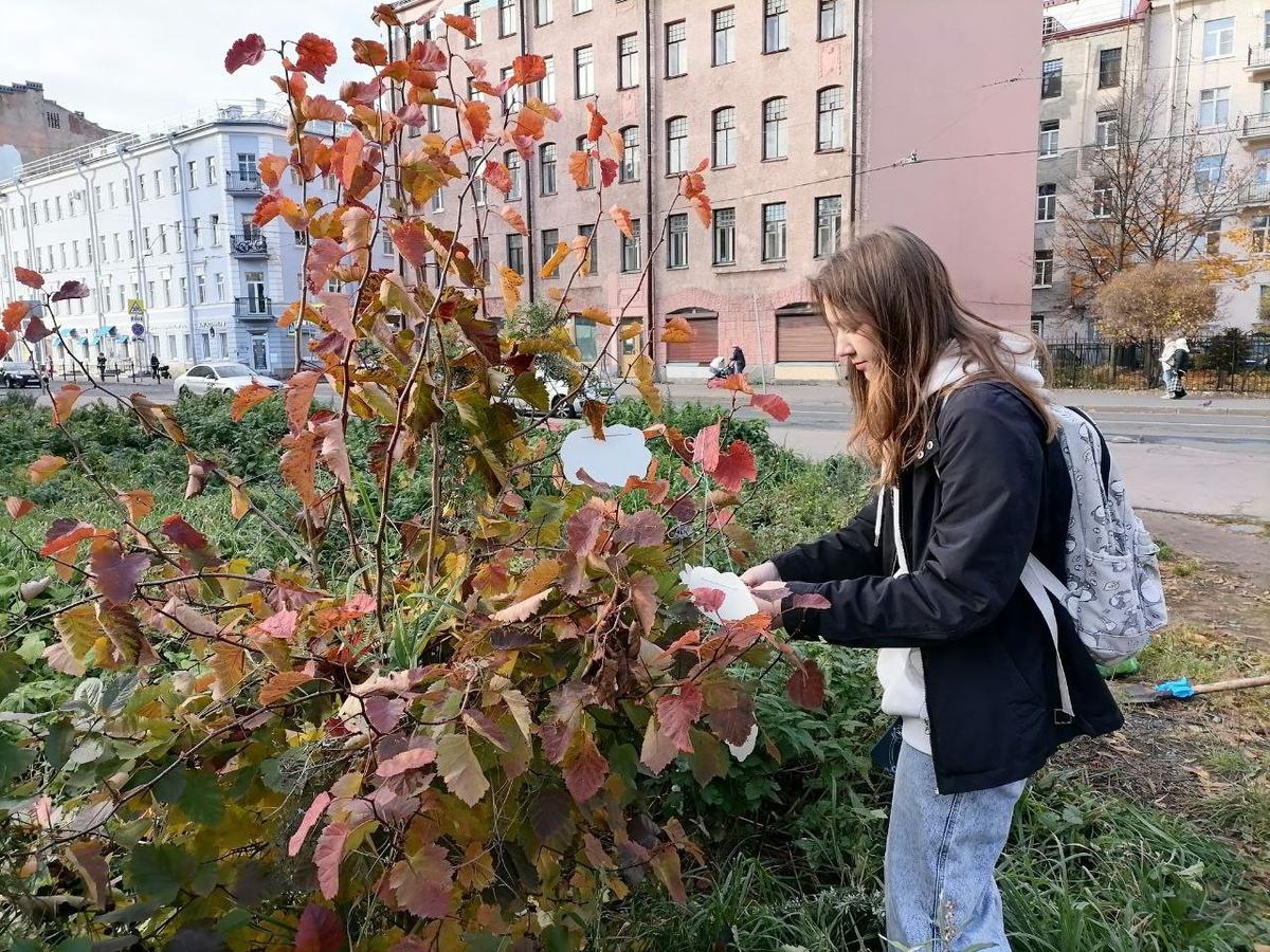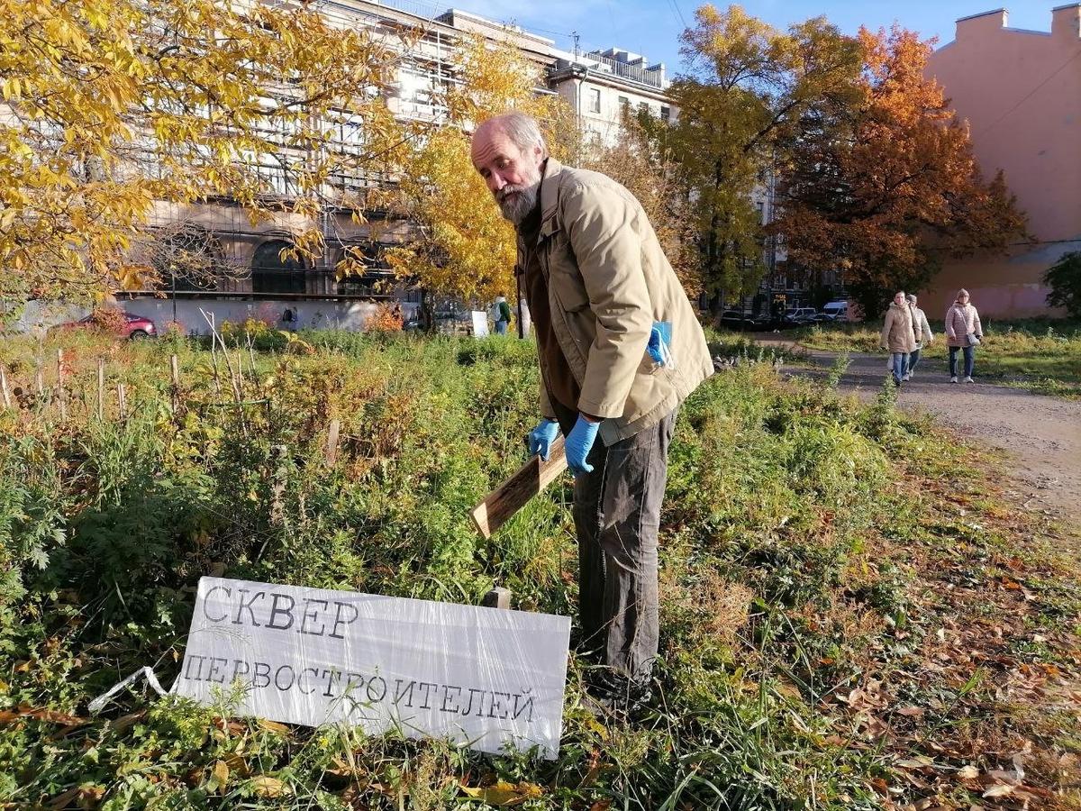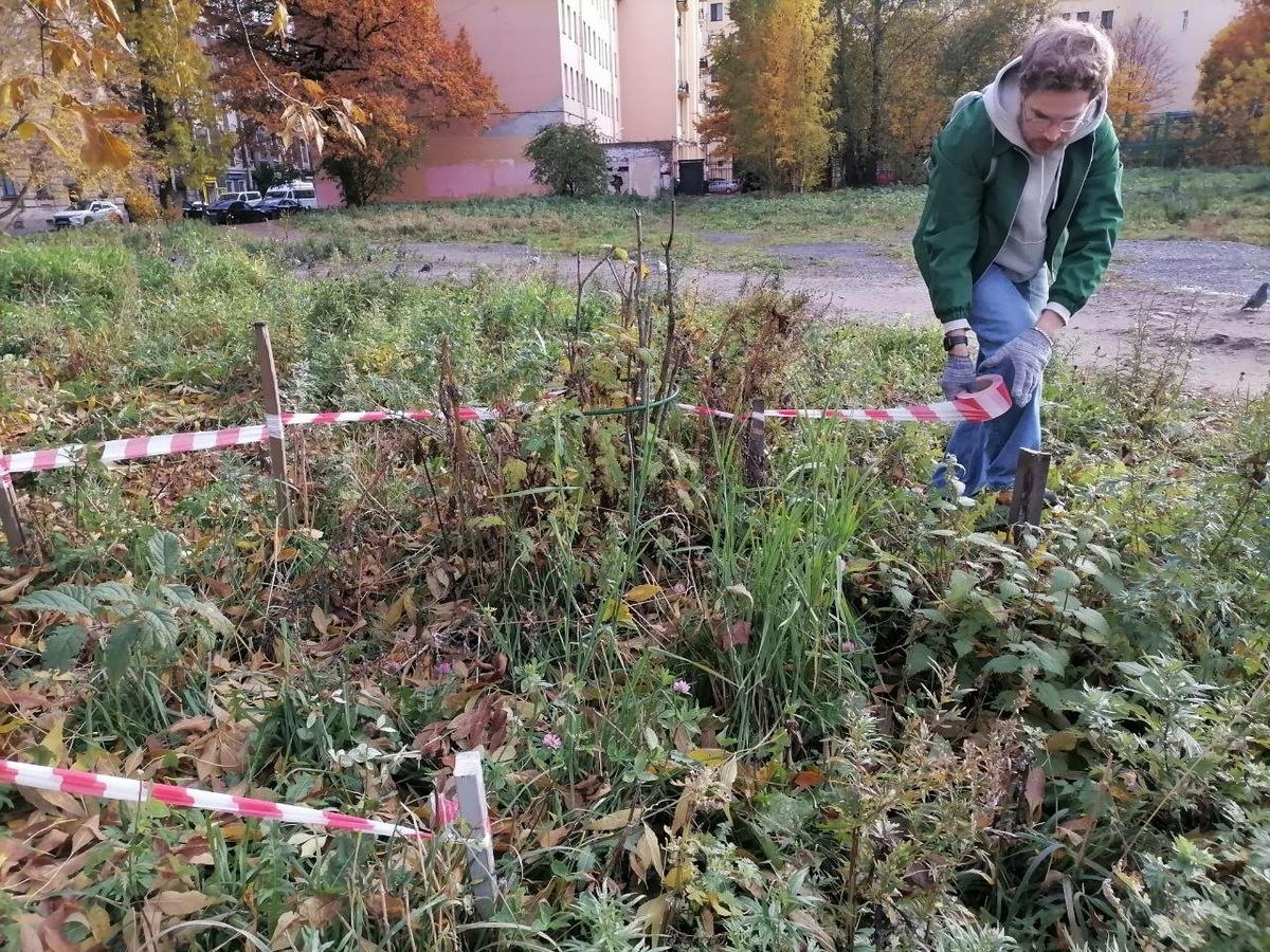 Участники движения «Общественный сад» 19 октября провели субботник на участке у пересечения Кронверкской и Сытнинской улиц. К инициативе присоединились градозащитник Сергей Васильев из объединения «Старый Петербург» и исследователи Александра из Петербургского университета и Ксения из Европейского университета.