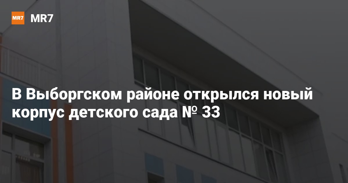 В Выборгском районе начал работу новый корпус детского сада № 33. Трёхэтажное здание, расположенное на Лиственной улице, дом 15, корпус 2, строение 1, рассчитано на 220 воспитанников — столько же, сколько и первый корпус учреждения. Об этом 19 октября сообщили в правительстве Петербурга.