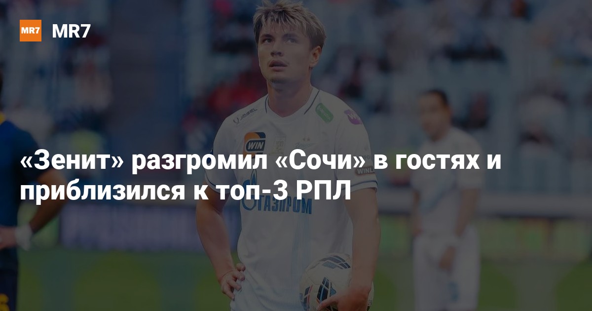 «Зенит» на выезде в 12-м туре РПЛ уверенно победил «Сочи» со счётом 3:0. Матч прошёл на стадионе «Фишт» в Сочи, главным арбитром встречи был Егор Егоров.